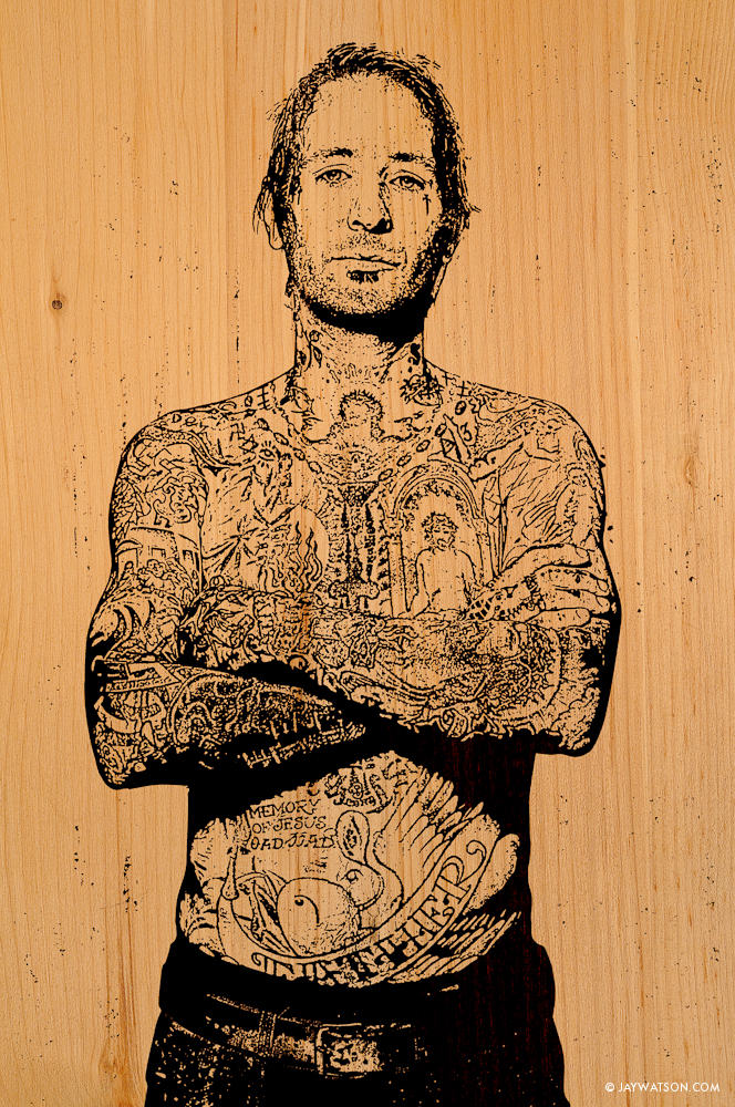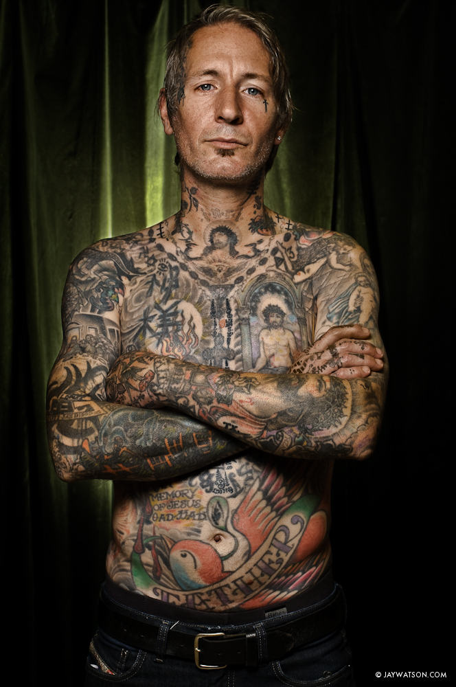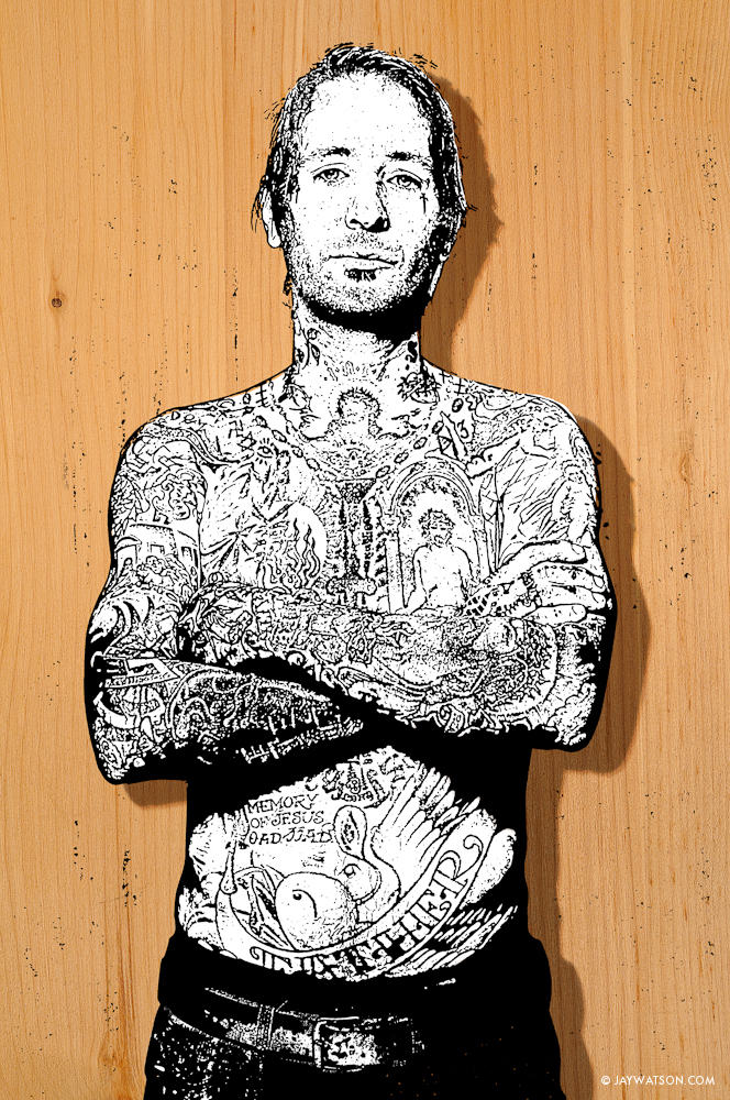 Last fall I was hired by Inked Magazine to photograph Oakland Tattoo artist Freddy Corbin mentioned in an earlier blog post here. Soon after final images were sent to the photo editor, I started manipulating an outtake from the shoot. Below is the retouched outtake that would serve as the starting point for the experiment.