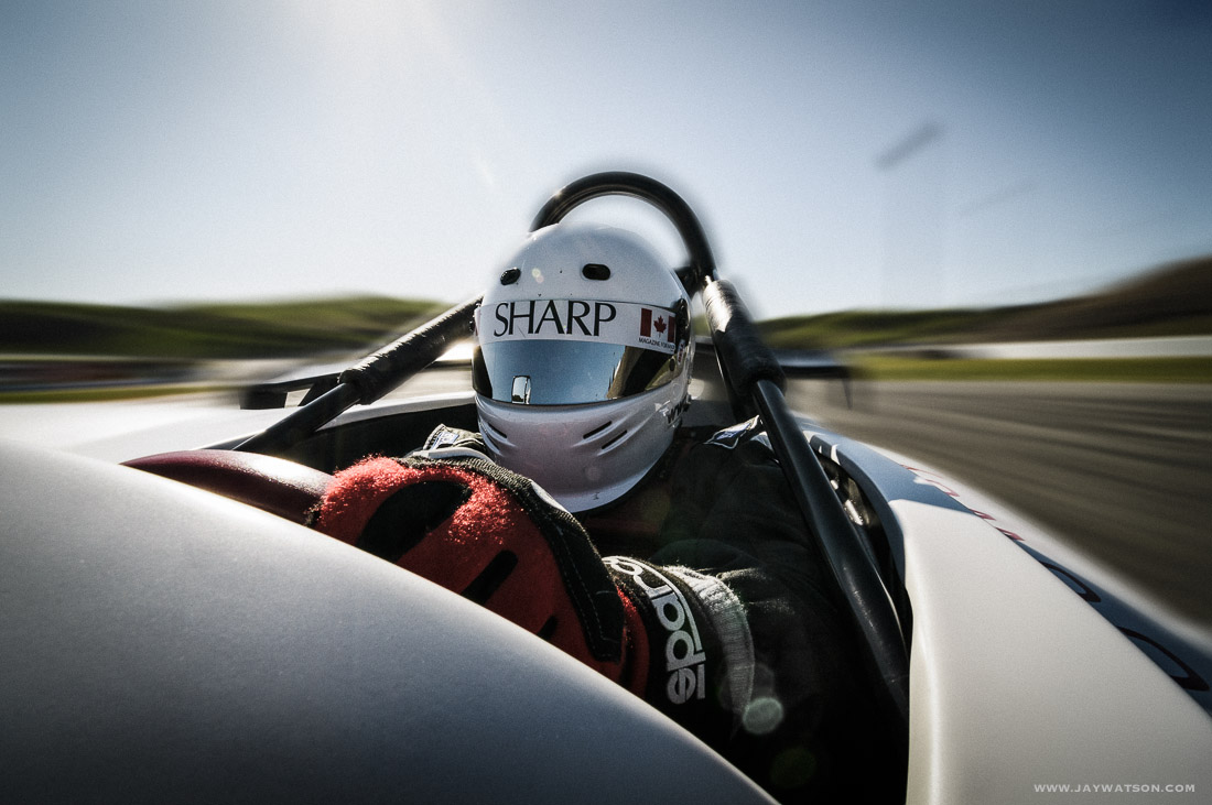 Brian Makse tests the Palatov race car at Infineon Raceway for an editorial feature in EVO Magazine.
