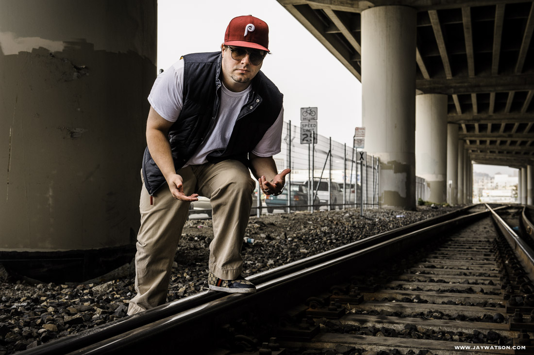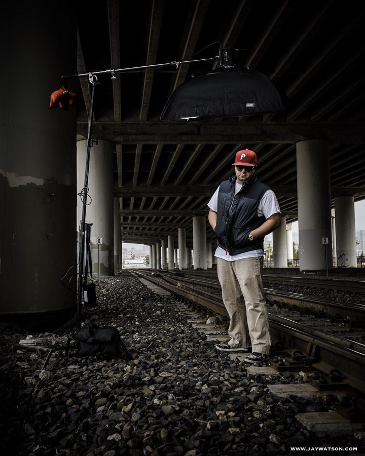 BTS. A behind the scenes shot of the location set up. Yeah we were working right next to a live train line, and we were trespassing. So what. It’s for hip hop.
