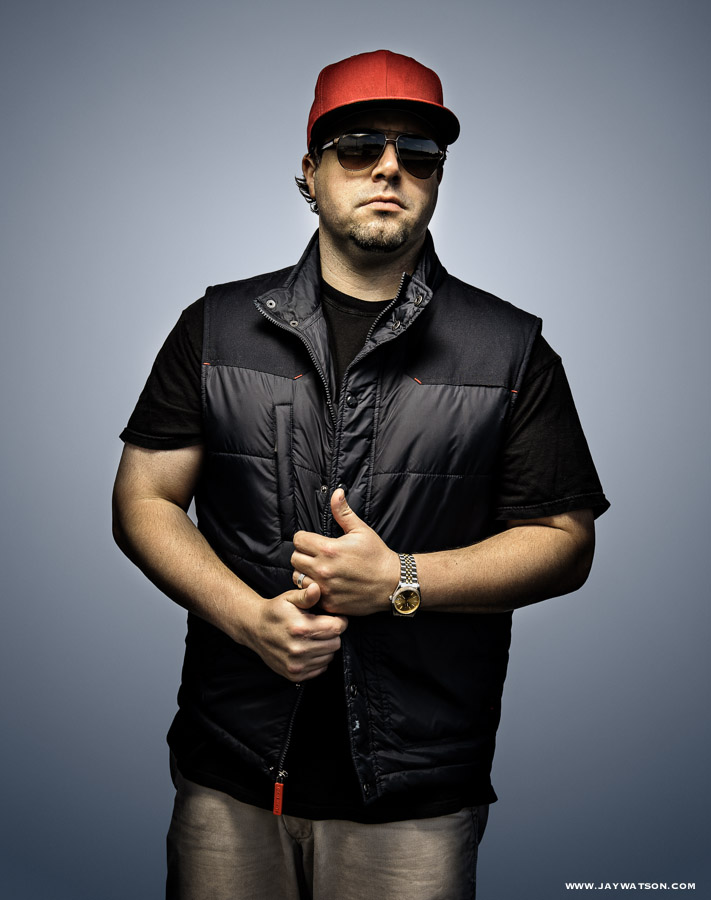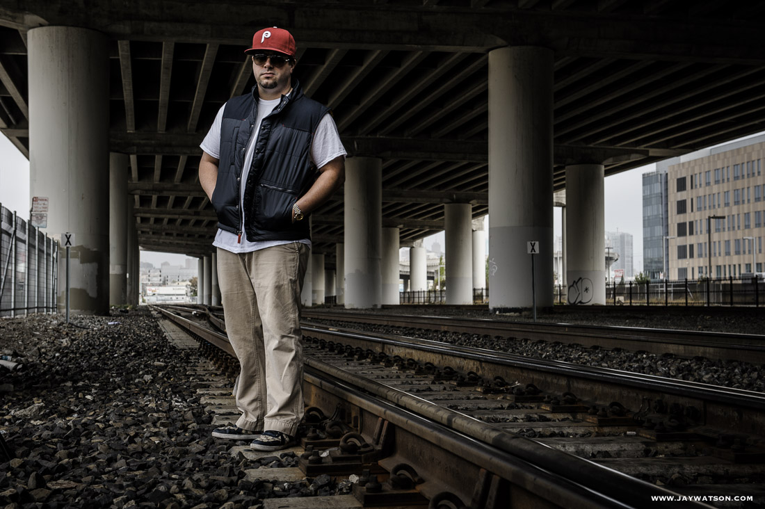 There was no smoke and mirrors. The photo editor asked for a location scene plus a studio shot, so we took the studio to the location to save time. Besides getting a full page in the mag, the best part of this gig was getting kicked off the train tracks by the transit police, plus jawing with Chris over hoops and family life. He’s solid. We share an East Coast connection, respect for old school rhymes, and love for Allen Iverson. Plus I dig the humor in his music.