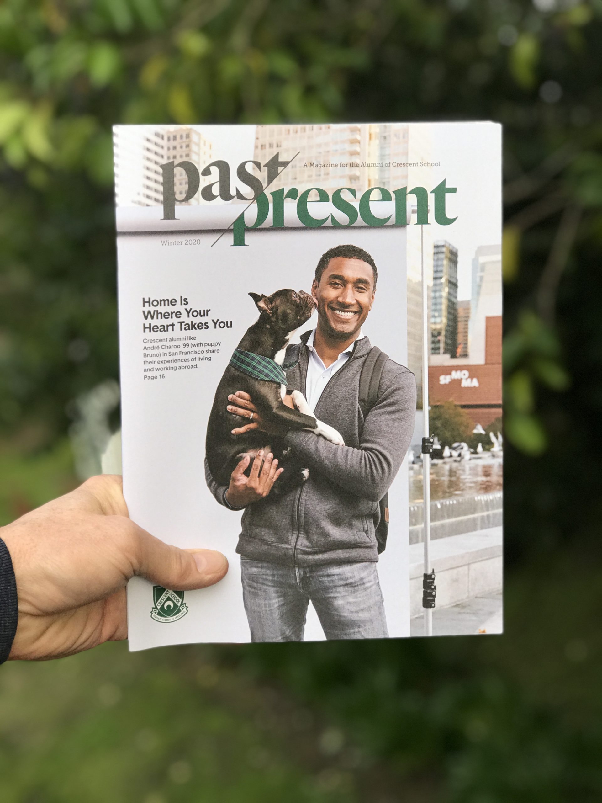 Smiles and licks. Here is an editorial portrait of Andre Charoo at the Yerba Buena Gardens shot in downtown San Francisco for Past & Present Magazine, the alumni magazine of Crescent School (Toronto). For this gig the BTS shot was planned ahead of time and become the cover shot.