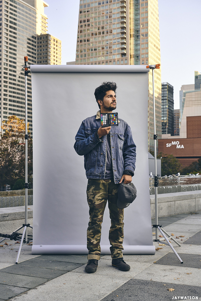 - The decision by the art director to combine the plain photo background and equipment with the SF cityscape.