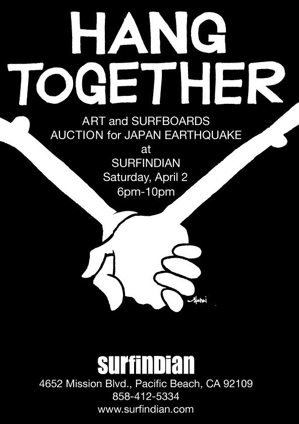 Art Show & Surfboard Benefit for Japan Earthquake relief on Saturday, April 2, from 6 p.m.-10 p.m. at Surfindian in Pacific Beach, CA
