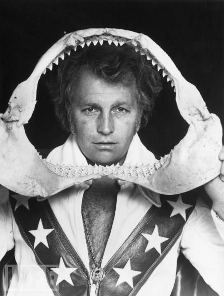 Evel Knievel served in the US army, worked at a copper mine, was a semi pro hockey player, started a successful hunting guide business, competed in ski jumping, pole vaulting, and rodeo events. Images from the Life Archive.