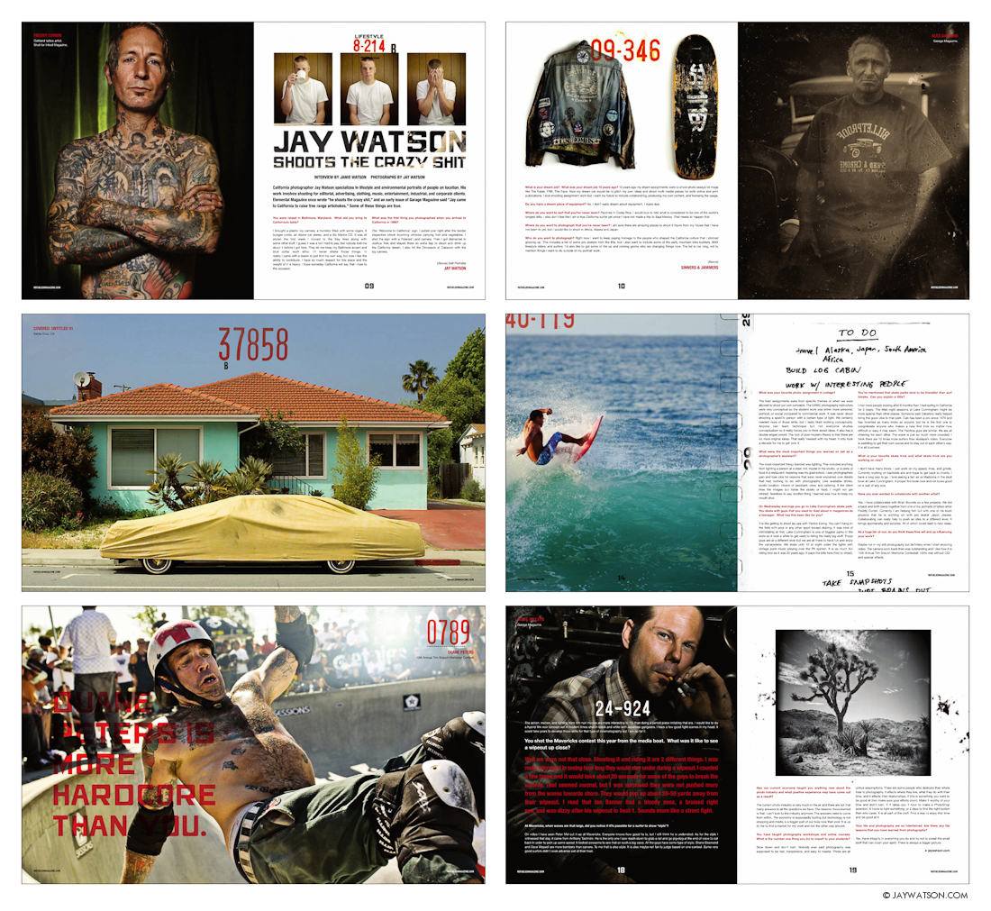 Interview in Refueled Magazine of San Francisco, CA Bay Area photographer Jay Watson. 12 page spread including images and questions by Jamie Watson.