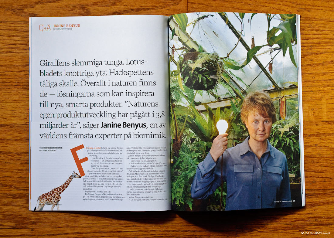 An editorial portrait of biologist Janine Benyus for Future Magazine, a Swedish publication about engineering.